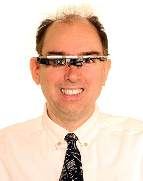 史蒂夫·曼恩,1962年出生,今年50多了。早年求學于MIT,理學學士,工學碩士,1997年拿到了媒體藝術博士學位,F在在多倫多大學當教授,在電器與計算機工程系,藝術與科學系各種跨界地牛掰閃亮著。 別看他這么逗樂,實在人家被業界尊為“可穿著技術之父”。上個世紀(1999年)就開始帶著圖中的EyeTap眼鏡四處拉風。2012年吃麥當勞時,還由于帶著這樣酷炫的裝備被人打過,在當時引起了全球范圍的對于谷歌眼鏡類型硬件的大討論。 他在動圖里曬的就是自己發明的三大神器:EyeTap眼鏡,智能腕表,和SWIM連續波形打印的AR技術。 曼恩主要的科技成就集中在計算機攝影技術方面:1993年,曼恩就第一次提出了“視頻軌道”算法;還發明過使用高壓液壓流體發生的樂器(好比,你可以表演彈個“水”); 上世紀八九十年代,曼恩開發了CLI(命令行界面)和GUI(圖形用戶界面),均屬于通過與現實世界的天然動作進行交互的方法。后來還開發了HCI基于聲樂的人機交互技術。 其總體的開發思路也是很光鮮,瞄準人類的各種天然行為研發交互技術,并且越做越精細。 假如說這是一個“搶大神,變身獨角獸”的時代,那么上圖左側笑地低調的Steve Feiner也被Meta集齊了。 史蒂夫·費納是哥大計算機系的教授,2014年獲得了IEEE VGTC電氣電子工程師學會可視化和圖形技術委員會會議評比的虛擬現實終身成就獎。 1996年他利用可穿透的顯示屏創建第一個戶外可移動增強現實系統。其設計的The Private Eye頭部佩戴顯示器利用一個可擺動的鏡子,掃描虛擬場景里垂直的LED陣列。探測屏幕對角線長度為1.25英寸,不外圖像會顯示在18英寸間隔遠的15英寸屏幕上。