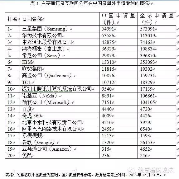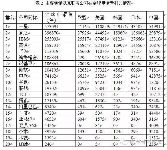 《講演》顯示,百度公司成立于2000年,早期就有少量專利申請。騰訊公司則從2001年開始就有專利申請,阿里巴巴自1999年景立之后,直到2004年以前,并未提交專利申請,直到2005年才開始提交專利申請。 顯然,從專利保護意識來看,在BAT三家之中,阿里巴巴的專利保護意識最差,首次專利申請發生公司成立5年之后,而從申請時間來看,BAT三家之中,百度的專利意識最強,是三家之中最早提交專利申請的公司。 因此,就BAT三家公司而言,百度、騰訊屬于典型的“技術驅動型”公司,而阿里巴巴則更像是“營銷驅動型”公司,其中,阿里巴巴自身對專利在內的知識產權正視程度不夠,恐怕也是其電商平臺早期一度“贗品泛濫”的原因之一。 布局拐點:騰訊覺醒最早、百度次之、阿里巴巴墊底《講演》顯示,2009年是百度專利申請量的的第一個轉折點,百度推出了全新的框計算技術概念,并基于此理念推出百度開放平臺。自2010年開始,百度專利數目迅速上升。 2012年9月,百度面向開發者全面開放包括云存儲、大數據智能和云計算在內的核心云能力。此后專利數目逐年上漲,在2012-2013年度增長速度稍有停滯后,于2014年突破1000件專利年申請量,達到1567件。 《講演》顯示,騰訊公司從2004年至2006年間,專利數目上升幅度較快,至2006年,達到專利申請量468件。從2007到2009年間,專利申請量略有減少。自2009年至2013年,騰訊公司的專利申請數目迅猛增加,2013年達到2387件。 《講演》顯示,2006年至2010年期間,阿里巴巴每年都提交約100件的專利申請,處于其低級發展階段。而2011年和2012年,阿里巴巴的專利申請量泛起井噴式增長,年均專利申請量達到了445件和533件,2013年和2014年專利申請量均保持在400余件。 由此可見,在BAT三家之中,騰訊的專利申請拐點泛起最早,大概發生在2004年,而百度則是在2010年框計算理念提出后進入專利申請井噴時期,阿里巴巴則是在2011年才加大專利申請力度。 不外值得留意的是,BAT三家差未幾都在2010年前后加大專利申請保護,一方面,這與市場競爭加劇有關,另一方面,應該也與國家出臺的專利申請獎勵政策有關。 布局重心:BAT亮點分別為“語義分析、動靜處理及電子商務”《講演》顯示,百度公司的專利分類大多數集中在“電數字數據處理方向”(G06F小類),其中,占最多數目的是小組是“即信息檢索及其數據庫結構技術方向”(G06F17/30),占到數目最多的十個小組總專利數的57%,這是由其搜索引擎的產品性質決定的。 其次還有“用于執行專門程序的裝置”(G06F9/44)占4%;“通過軟件的測試或調試防止錯誤”(G06F11/36)占3%;“自動分析,例如語法分析、正射校正”(G06F17/27)占3%等等。 《講演》顯示,騰訊公司31%的專利處于“信息檢索;及其數據庫結構”(G06F17/30),其次為“傳輸控制規程,例如數據鏈級控制規程”(H04L29/08),占比約為17%。專利申請較為集中的技術方向還包括“以協議為特征的”(H04L29/06)、“動靜交換系統”(H04L12/58),分別占專利申請量的17%和13%。 《講演》顯示,阿里巴巴的專利分類大多數集中在“電數字數據處理方向”(G06F小類),其中,占最多數目的小組是“即信息檢索及其數據庫結構技術方向”(G06F17/30),達到1000件,占到十個小組總專利數的42%,這是由其主要是電子商務網站的性質決定的。 其次,阿里巴巴在“數字信息的傳輸”(H04L)的專利數目也不少,其中“傳輸控制規程,數據鏈級控制規程”、“以協議為特征的”、“動靜交換系統”三類一起占了總數的近33.2%,且每種專利分類的單個數目也都在170件以上。 阿里巴巴專利數目在100件以上的還有“貿易,例如購物或電子商務”(G06Q30/00),達到176件,占總數的7.4%。 由此可見,BAT三家公司因為業務重心不同,各家的專利布局各有側重,尤其是對于核心業務和未來布局的不同,各家選擇的專利或技術重心也差別越來越大。 百度在做好主營搜索技術布局外,還在加大語音識別、語義分析等人工智能技術布局,騰訊則是基于即時通信開展相應的衍生領域專利布局,而阿里巴巴則是基于電子商務邏輯在信息檢索、傳輸及購物等領域開展專利布局。 |