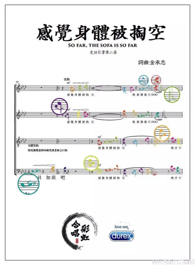除了彩虹室內合唱團各大平臺的同步上線外,此次還聯合杜蕾斯和同志大叔展開了一系列合作。 昨天上午9點,@杜蕾斯官方微博 發布了一張海報,主題就是《感覺身體被掏空》,該海報先于彩虹室內合唱團發布視頻就推出了,海報下方很顯著的貼出了彩虹合唱的logo,應該是為了之后的合作做鋪墊。