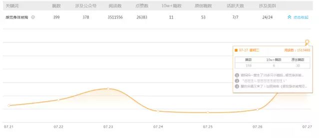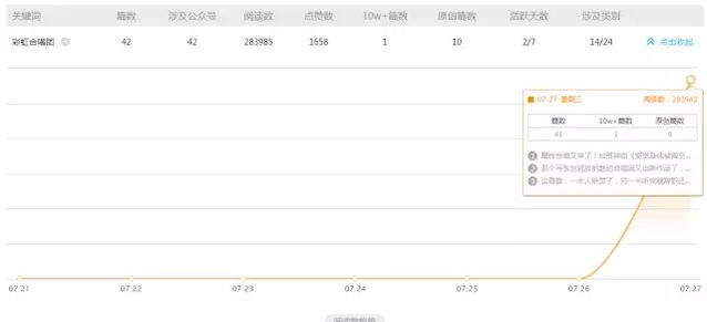 由于被大量公家號轉發,《感覺身體被掏空》在騰訊視頻的播放量達到252萬。另外,固然B站并非首發平臺,但播放量也高達137萬,彈幕數達3800條,珍藏量也達到一萬多。 通過新榜的數據產品“趨勢查詢”,分別輸入樞紐詞“彩虹合唱團”和“感覺身體被掏空”可以發現,兩個樞紐詞都在昨天達到了峰值。