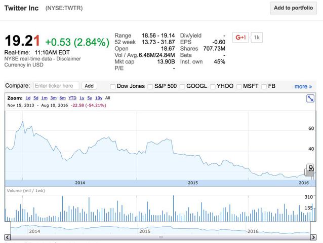 Twitter一直處于虧損狀態,近日有媒體爆料說,它計劃將舊金山總部的1.7萬平方米空間對外轉租,算是開源節流。 與微博每個季度大致都有30%以上的MAU同比增幅比擬,Twitter的用戶活躍度在變差。到了2016年Q2,它的MAU同比增幅進入了負數區。 Twitter常常換CEO,以至于我的朋友開玩笑說,這家公司,已經有了一股雅虎的氣質。 這是為什么? 四 Twitter長期利潤為負,我發現了一個小小的原因:它的開支,與微博比擬,有過高之感。 研發用度和銷售、治理及行政用度這兩項,在Twitter和微博的收益表里,都是重要的開支。