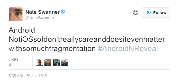 之前,谷歌向全世界用戶征集Android N的命名方案。從人們的反應來看,好像牛軋糖并非最讓人期待的名字。 在各種候選名字中,Nutella(能多益)——這款意大利廠商Ferrero生產的聞名巧克力榛子醬受到很多用戶的支持,但未能終極被選中,據說還傷了不少網友的心。 除此之外,還有很多被網友寄予厚望的名字也慘遭淘汰,如印度網友提交的Neyyappam,這是一種來自印度的流行小吃甜點,用大米和粗黃糖通過油炸制成;再好比New York Cheesecake”(紐約芝士蛋糕),這一度是谷歌內部研發Android N的代號。 再好比下面這個:
