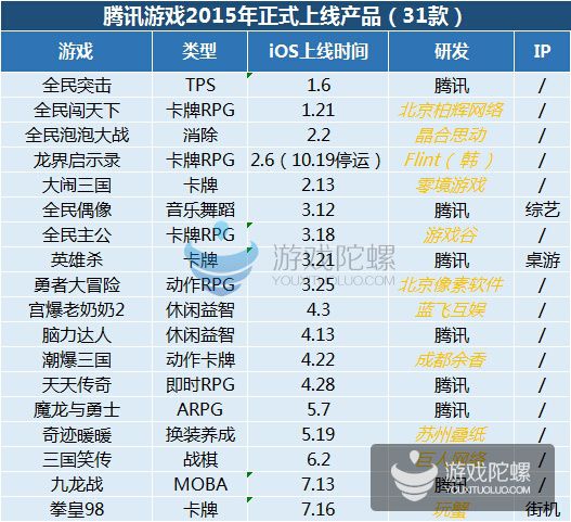 2015是整個行業巨變的一年。游戲陀螺開啟了以“變”為主的年度系列選題,讓我們回顧回頭總結的同時,也瞻望新的未來。今天為大家帶來的是大廠之騰訊篇。騰訊很大業務也良多,每個領域都可以去深究(如端游、頁游、H5),固然騰訊的2015年早已被多家寫過,但這里我們將以另一個方向解讀,游戲陀螺眼中的騰訊游戲(手游業務)。我們的話題是“騰訊這家公司的內冷外熱,在精品策略下如何蠶食與入侵市場?”。 在文章開頭,我們要先解決這樣一個題目。 應該如何評價騰訊這家公司? 六年前的2010年7月,《計算機世界》刊登的一篇封面頭條文章。文中把騰訊作為互聯網公敵進行批判,將互聯網貿易競爭寫成了不可調和的恩怨。而緊隨其后的“3Q大戰”,更是讓人們看到了騰訊”霸道’的一面。兩件事情影響深遠,包括騰訊內部也在思考。固然沒有公然承認,但游戲陀螺預測在2010年開始籌備的騰訊開放平臺可能就與此有關。而這幾年,騰訊開放平臺也確實為互聯網發展貢獻了非常大的氣力,當然也讓良多的公司、創業者與騰訊利益捆綁。 假如細心研究,不難發現騰訊戰略是有明確的方向和目標,各業務也是戰略沿襲,以產品為核心,去打造平臺,走開放式的孵化項目機制。騰訊基于大流量、大數據還有技術的上風不容忽視,這樣造成了一個題目,騰訊產品上線的“產業化”尺度。微信、手Q精品平臺的手游調優就是以此為準。這里還有一個讓行業人士愛恨交織的騰訊“微立異”理論,就馬化騰根據騰訊已有的資源提出來。 時過境遷,行業對騰訊評價也在改變。移動時代下的微信“一夜之間”為游戲行業洗出數億的手游玩家(微信游戲《飛機大戰》),而最近騰訊進軍VR的動靜也給予了從業者決心信念和鼓舞。當然,騰訊在Apple Store暢銷榜上的霸榜行為讓人不能直視,誰讓騰訊掌控著大量用戶與精品。另一方面,我們也應留意的是,也就是騰訊才有實力能把《火影忍者》這樣的日本國民動漫IP做出手游和頁游來。在長期的積累和上風的資源下,騰訊在持續爆發,在技術引發的行業拐點處,快速搶占著市場。 騰訊游戲成績背后的冷與熱 不管是互聯網、仍是游戲領域,騰訊在中國都有著舉足輕重的地位。目前騰訊游戲(端、頁、手)收入占其收入50%以上,占中國整個游戲行業的50%以上,其凈利潤也高達50%。這樣成績的背后與騰訊的運營策略有很大聯系關系。 1、騰訊的冷是內部的冷靜與冷血 “養蠱” 騰訊內部的大數據與戰略研究為其決議計劃提供著依據,當然也需要負責的人理性的思索和泛起題目時的冷靜面臨。這其中難能可貴的是自身策略的快速調整。騰訊2015年Q1曾發布60款的年度手游精品計劃,而 2015年全年,騰訊實際正式上線重點產品31款(重點指的是登陸微信和手Q,發行測試中未算),上半年正式上線產品數為14款,原本的每月3-4計劃縮減為了每月1-2款的速度。而這中間的變化就是在Q2不追求數目而更在意質量的策略調整。 但騰訊鮮明的下也有著不被熟知的內部淘汰與殘酷競爭。固然在騰訊立項相對輕易,也有大資源支持,但假如一年或一年半內沒有取得好的成績,也難逃被邊沿化或是裁撤的命運。包括海外游戲,2015年我們已經看到多款停運產品(多數為海外產品)。而在對外策略上,以游戲為例,我們可以清楚的看到騰訊會進入每一個已經被驗證的領域,并且取得市場份額的絕對領先(除了回合制外)。即使在統一個細分品類,騰訊也會推出多款產品,在我們看來,這更像是“養蠱”或“左右互搏”。不外效果也顯而易見,騰訊這幾年嘗盡了關于開立異品類所帶來的紅利好處。 2、騰訊的熱是外部的戰略與布局:市場蠶食與入侵 說到騰訊的2015年,我們這里就不得不提及,騰訊的內部整合與精品策略。恰是由于這兩部門的執行,騰訊手游才得以快速擴展并逐步蠶食外部市場。騰訊內部整合的詳細時間我們不得而知,通過外部觀察,從2014年初到2015初,整個一年多的時間,騰訊內部進行了以游戲平臺為核心的五大BG的資源整合與買通。而在這個過程中,騰訊更加開放,第三方合作產品數目漸增,截止目前,40余家公司與騰訊展開合作,產品已經或將登陸精品平臺,在這些廠商中,既有傳統端游大廠如盛大、暢游、西山居等,也有新興手游研發。另一方面,騰訊的精品策略也貫徹了兩年,比擬2014的精品1.0,2015年的精品2.0進級更加夸大細分與垂直。2016年騰訊或許會宣布新的精品3.0策略。不外,更讓游戲陀螺在意的是從2015年底開始的騰訊精品手游渠道開放合作,包括小米等外部渠道開始推薦騰訊產品,并且2016年的合作力度會更大。而且在海內格式已定的情況下,騰訊也在發力海外市場,在港澳臺、日韓、東南亞等,騰訊系的產品不斷被代辦代理上線。 另外在騰訊團體的游戲投資布局上,根據游戲陀螺統計收拾整頓,騰訊這些年投資了良多海內的優秀公司如樂元素、網域游戲、谷得游戲、銀漢、智明星通、中清龍圖、游戲谷、華清飛揚、樂逗、Bilibili、胡萊等,儼然已經入股了超半數以上的著名公司,它們都是投資人眼中的優質游戲公司。 在海外,據公然信息顯示,騰訊投資入股的公司有:Nexon、Riot、Glu、KakaoTalk、Aiming、暴雪、Level Up、EpicGames、PATI Games、CJ Games、Reloaded studios、Redduck、Eyedentity games、GH hope lsland、Topping、ZAM、Raptr、Studios、Hon、Next play、Out、Spark、Tapzen、Robot Entertainment、Pocket Gems、Miniclip