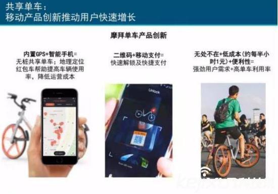 在這份2017年的互聯網趨勢陳述中,摩拜單車被獨自、要點提及。以摩拜單車為代表的同享單車,被認為是移動商品立異的模范。其間,摩拜單車的GPS地輿定位、掃碼解鎖和方便付出、高效利用率、無處不在的便利性效勞等立異被分別指出和論述。