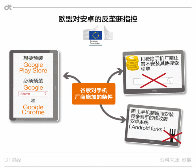 上月底,歐盟發布的最新聲明,將戰線擴展到了谷歌移動市場的核心業務——安卓系統。在歐盟的官方聲明中,歐盟指出了谷歌的三大罪狀:
