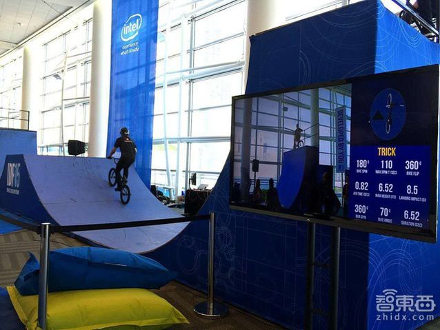 RealSense技術還被應用于最近火熱的無人機上,上述這款蟾皮頂部六面RealSense實感3D攝像頭,并大量采用了碳纖維材料保證飛行器的耐用性。實際上,無人機的操控一直是個挫折,故其也需要在相對空曠的空域飛行。而基于該技術,無人機甚至可以實現在森林間的全自動飛行。 7. BMX智能自行車