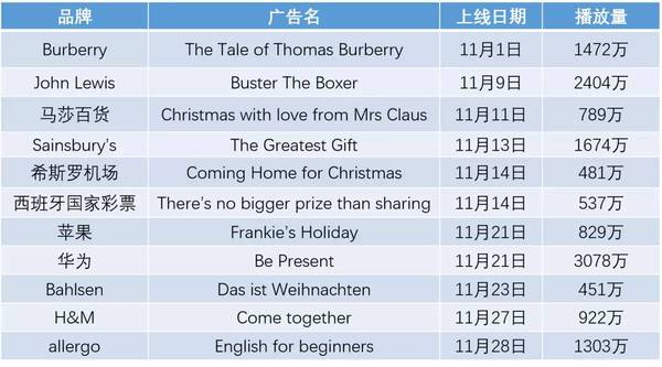 圣誕節對于企業的意義,已經不再是一個促進銷售的簡樸節日。品牌們都但愿更專心地介入進來,并嘗試著傳遞一些價值觀。反正都要做廣告,那就做個高質量的唄,它們這樣想。 其他領域的比較或許還白熱化,但廣告方面卻高下立判,并且近年來的差距還在逐漸拉大。每年,西方誕生的優質圣誕廣告越來越多,播放量、話題性乃至實際銷售數據都表現不錯,這也使得更多的品牌愿意大筆花錢,即使在這個不那么好的經濟環境里。 而中國的企業和廣告人們仍在試探,固然已經開始有了一些積極的嘗試,但進程仍舊緩慢。春節就將到來,這一次又能帶來多少像去年六小齡童《猴王世家》那樣的春節廣告,這個題目短短36天之內就將有了謎底。 在此之前,我們或許可以從今年圣誕廣告的變化中汲取一些經驗。至少那些成功的廣告,會解答一些困惑,譬如如何和消費者更好地溝通。 1、廣告大片 一部名為“The Tale of Thomas Burberry”的作品同時泛起在了評分網站IMDb和豆瓣上。IMDb上的評分是8.2,豆瓣的評分為8.3,達到了目前豆瓣片子TOP250的門檻。 作品導演是阿斯弗·卡帕迪爾,他執導的作品《艾米》獲得了今年奧斯卡最佳紀錄長片;編劇馬特·查曼憑借《間諜之橋》提名今年奧斯卡最佳原創劇本;男主角多姆納爾·格里森參演過《荒田獵人》和《星球大戰:原力覺醒》;執掌鏡頭的是憑借《藝伎回憶錄》獲得奧斯卡最佳攝影的澳大利亞人迪昂·畢比。 這看起來就是一部片子。除非留意到它的時長——216秒,這時你才會發現它好像有些不一樣。 這個短視頻是Burberry為圣誕節推出的節日廣告。這個160年歷史的品牌,但愿在節日來臨的時候給消費者講述一個故事,關于創始人Thomas Burberry發明防水面料嘎巴甸的過程。 制作團隊將拍攝地點選擇了英國牛津郡的Shirburn城堡,并在那里搭建出了一條一戰時期的戰壕,設計工作室等場景的美術設計則參考了檔案史料。全片的本錢據稱高達1000萬英鎊,均勻每秒本錢為39.5萬元人民幣。 11月1日上線的這則廣告拉開了今年圣誕廣告大戰的帷幕。一天時間內YouTube上獲得的觀看數達到了178萬,而現在這個數字飆升至1472萬。 YouTube下點贊最高的一條評論寫著:“Holy shit,我但愿這是一部真的片子。”在豆瓣上,一位用戶留言說:“我tm認為是片子預報。”好像,只有粗話才能夠表達出內心的狀態。 圣誕廣告越來越“大片化”,不只是Burberry在這么干。 H&M在11月27日推出了名為“Come Together”的作品。導演韋斯·安德森的代表作是《布達佩斯大飯店》,在去年奧斯卡中共計提名10個獎項。 而今年,他將最喜愛的場景——行駛在大雪中的火車——引入到廣告當中。講述了在一列因大雪而延誤的火車上,可能將錯過圣誕狂歡的人們在20分鐘內如何布置圣誕餐會的故事。對了,男主角艾德里安·布洛迪同樣是一位片子人,在2003年憑借《鋼琴師》斬獲最佳男主角。 退出中國市場的馬莎百貨,并沒有在圣誕廣告的制作上勒緊腰帶。它的圣誕廣告講述了圣誕白叟的妻子騎著重型機車,搭著直升機去匡助一個小男孩實現愿望的故事。濃厚的女權主義色彩成功羈縻到了一些女性觀眾,而女主角珍妮·麥克蒂爾也曾參演過多部片子。 圣誕,已經成了品牌們非常珍視的廣告檔期,而非簡樸的廣告時段。企業的經營者們逐漸達成了一種共鳴:不僅要提供廣告,更重要的是提供精心拍攝的優質廣告。 “該片子讓我們對Thomas Burberry長久而卓越、交織著20世紀歷史跌宕放誕放誕起伏的一生有了一定的了解。” Burberry首席創意總監兼首席執行官Christopher Bailey用“片子”一詞注解了自己對圣誕廣告的想法主意。 2、John Lewis的申明鵲起 今年的圣誕廣告大戰始于Burberry廣告的發布。之后的一個月,各大品牌紛紛推出了自己的廣告,讓這個檔期顯得十分擁擠。 固然,廣告主分布在各個國家、各個行業,但它們難得地形成了共鳴:用故事來吸惹人們的留意力。事實也證實,相較于不加控制的品牌露出和促銷信息,那些娓娓道來的品牌收成了更大的影響。 今年發布圣誕廣告的部門品牌及播放量 當然,圣誕廣告從來都不是新鮮的事物,例如今年已經是蘋果圣誕廣告推出的第33年。但作為廣告檔期存在的圣誕歷史并沒有那么長,在這個過程中,英國百貨商店John Lewis扮演了樞紐的角色。 它在2007年推出了首支圣誕廣告,隨后形成每年定時發布廣告的習慣。2011年的圣誕廣告“The long wait(等待)”成為了奠定此后風格的作品,廣告講述了一個焦急等待節日到來的小孩,在圣誕的早晨將包裝精致的禮物送給父母的故事,終極在YouTube上獲得了793萬的播放量;2014年的“Monty the Penguin(企鵝蒙蒂)”是另一個代表作,播放量達到2700萬。 在John Lewis的圣誕廣告中,除了故事,背景音樂是它的另一個特色。固然幾乎都由小眾歌手演唱,但大多數在廣告中泛起的歌曲,都能在隨后的歌曲排行榜中獲得不錯的位置。2012年的“The Power of Love”和2013年的“Somewhere Only We Know”甚至沖到了英國流行音樂排行榜的榜首。 除了這些周邊的影響,John Lewis對廣告帶動銷售的效果也感覺滿足。官方表示過去四年的圣誕廣告流動均勻晉升了16%的節日銷售量,到店人數則在2013至2015年間實現了92萬到140萬的增長,增幅超過50%。持續性地按期廣告投入讓John Lewis擁有了一張品牌手刺,在維基百科上甚至泛起了“John Lewis圣誕廣告”的列表。 在輿論追捧和實際銷售