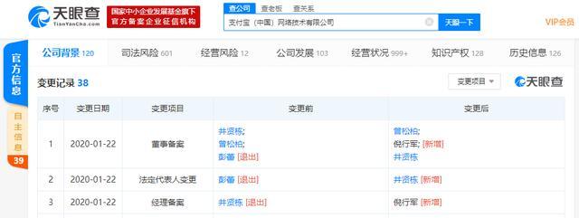 2月6日音訊,天眼查數據顯示,1月22日,付出寶的運營主體付出寶(我國)網絡技術有限公司發生工商變更,彭蕾卸職法定代表人和董事,其間法定代表人由井賢棟接任,