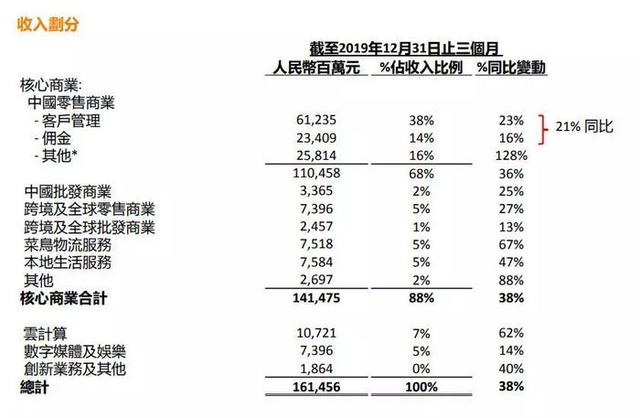 2月14日音訊,北京時間2月13日晚間,阿里巴巴集團發布2020財年第三季度財報。財報顯現,阿里巴巴第三財季營收為人民幣1614.56億元,同比增加38%。