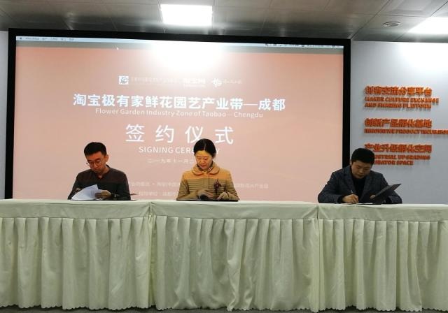 11月22日,成都市郫都區第二季百日擂臺賽文創企業集中簽約暨推介會、淘寶極有家鮮花園藝工業帶(成都)項目簽約儀式在郫都區春天花樂園舉辦。