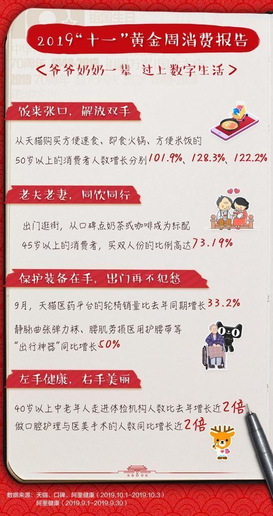 10 月 6 日音訊,阿里發布《阿里巴巴 2019「十一」黃金周消費數據陳述》顯現,陳述顯現,本年十一黃金周,線上消費呈現精致化、高效化、智能化趨勢,
