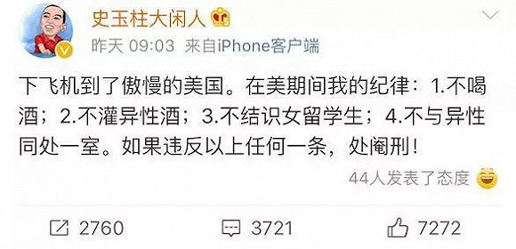 昨日史玉柱發了一條微博,瞬間刷屏朋友圈,如下: