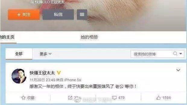 服刑兩年的快播董事長王欣就快出獄了。如果不考慮弛刑,3年6個月刑期將在2018年2月完畢。2017年11月20日,他的妻子曾發微博稱:“感謝又一年的相伴,總算快要出來重振雄風了老公等你!”11月24日,這條微博現已刪去。