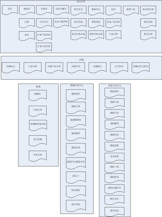 C2C電子商務網站建造欄目圖,該網站包含了會員、資訊、商務為一體的地方性電子商務網站。