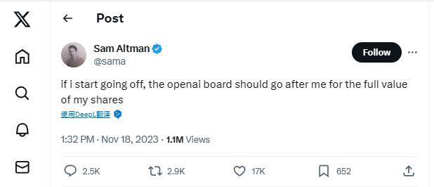 在OpenAI公司內部,一場關于是否應該“開火”的爭論正在上演。 當地時間2月15日,阿爾特曼在推特上回應了OpenAI聯合創始人兼CEO山姆·阿爾特曼(Sam Altman)周三的一條推文。