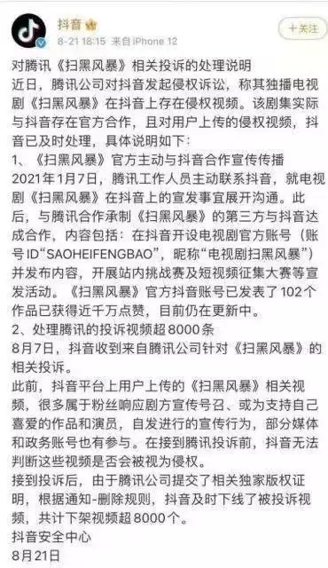 近騰訊與抖音就長、短視頻版權問題“握手言歡”,雙方宣布“將盤繞長短視頻聯動推行、短視頻衍生創作展開協作!边@一舉措,惹起了社會的普遍關注與討論。被看做是“長短視頻之爭的一個“新拐點”。 很多網友慨嘆“早該如此”,