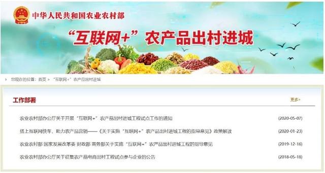 5月7日,農業鄉村部下發《關于開展“互聯網+”農產品出村進城工程試點工作的通知》,計劃在2年內建成100個示范縣,完成農產品出村進城便捷、順利、高效。