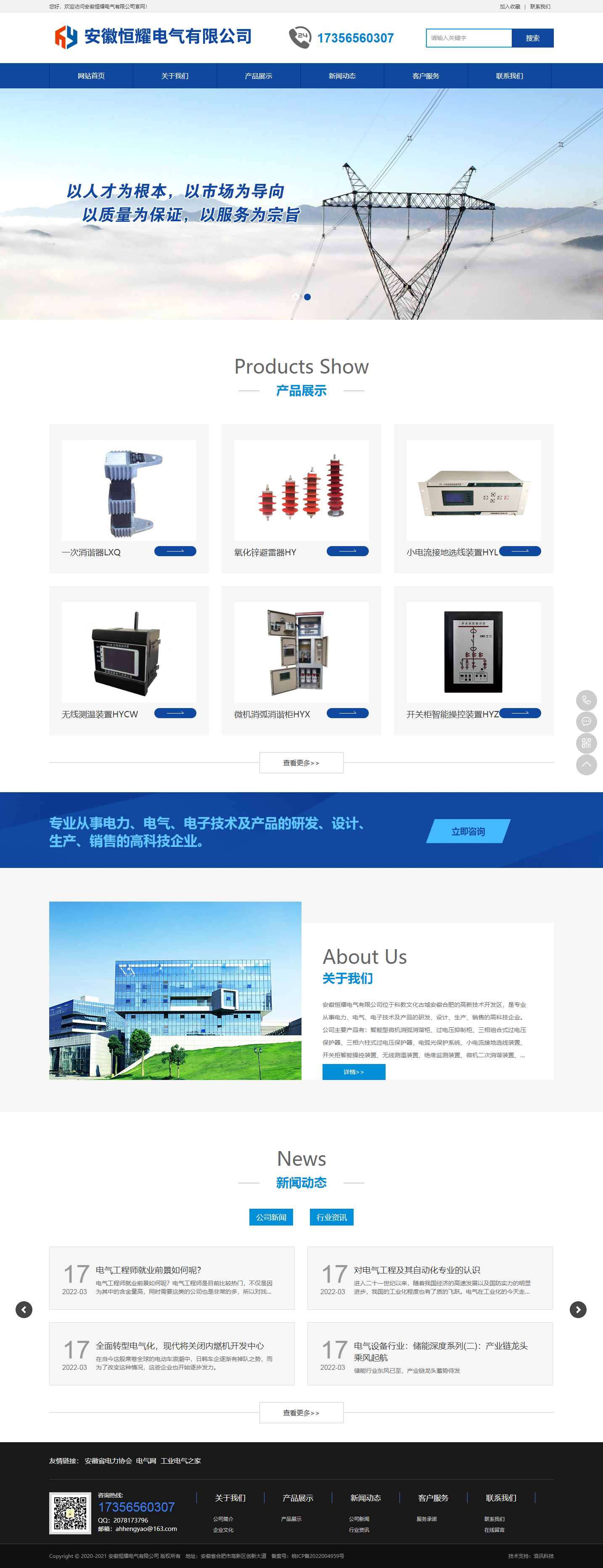 安徽恒耀電氣有限公司位于科教文化古城安徽合肥的高新技術開發區,是專業從事電力、電氣、電子技術及產品的研發、設計、生產、銷售的高科技企業。